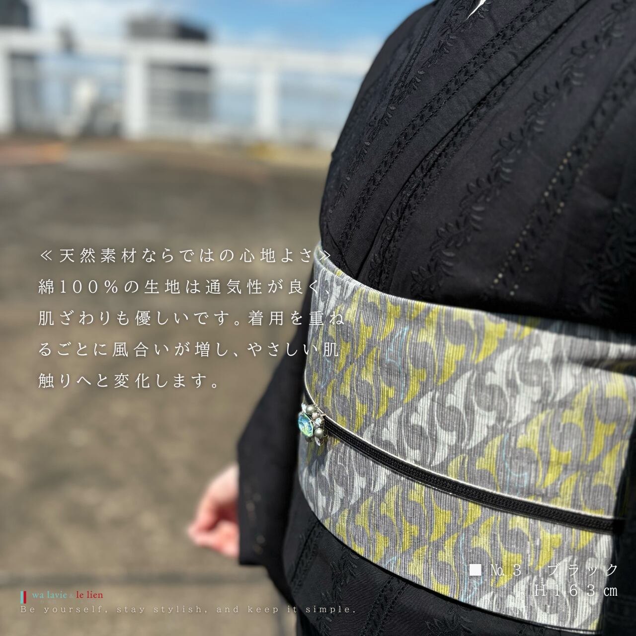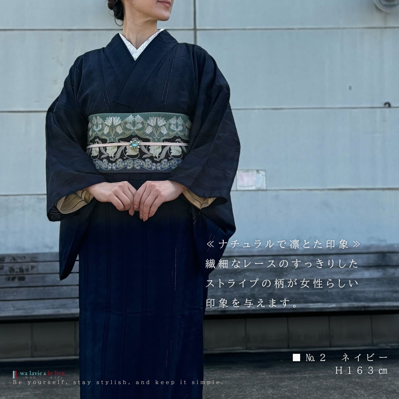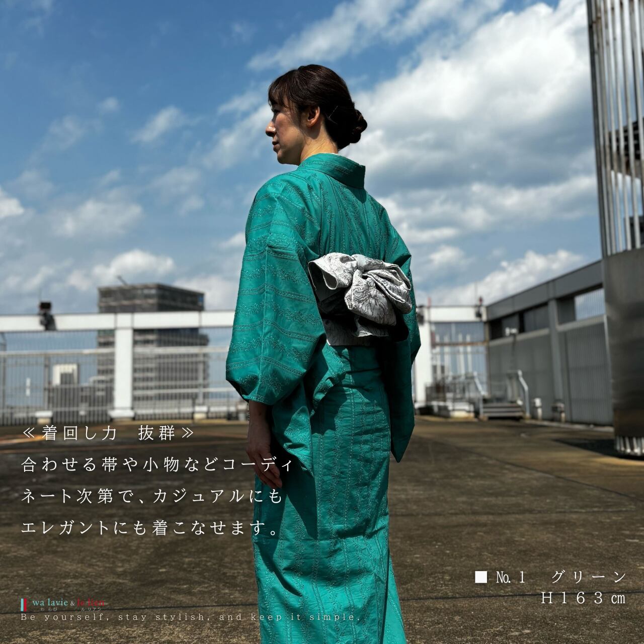 合わせる帯や小物などコーディネート次第で、カジュアルにもエレガントにも着こなせます。