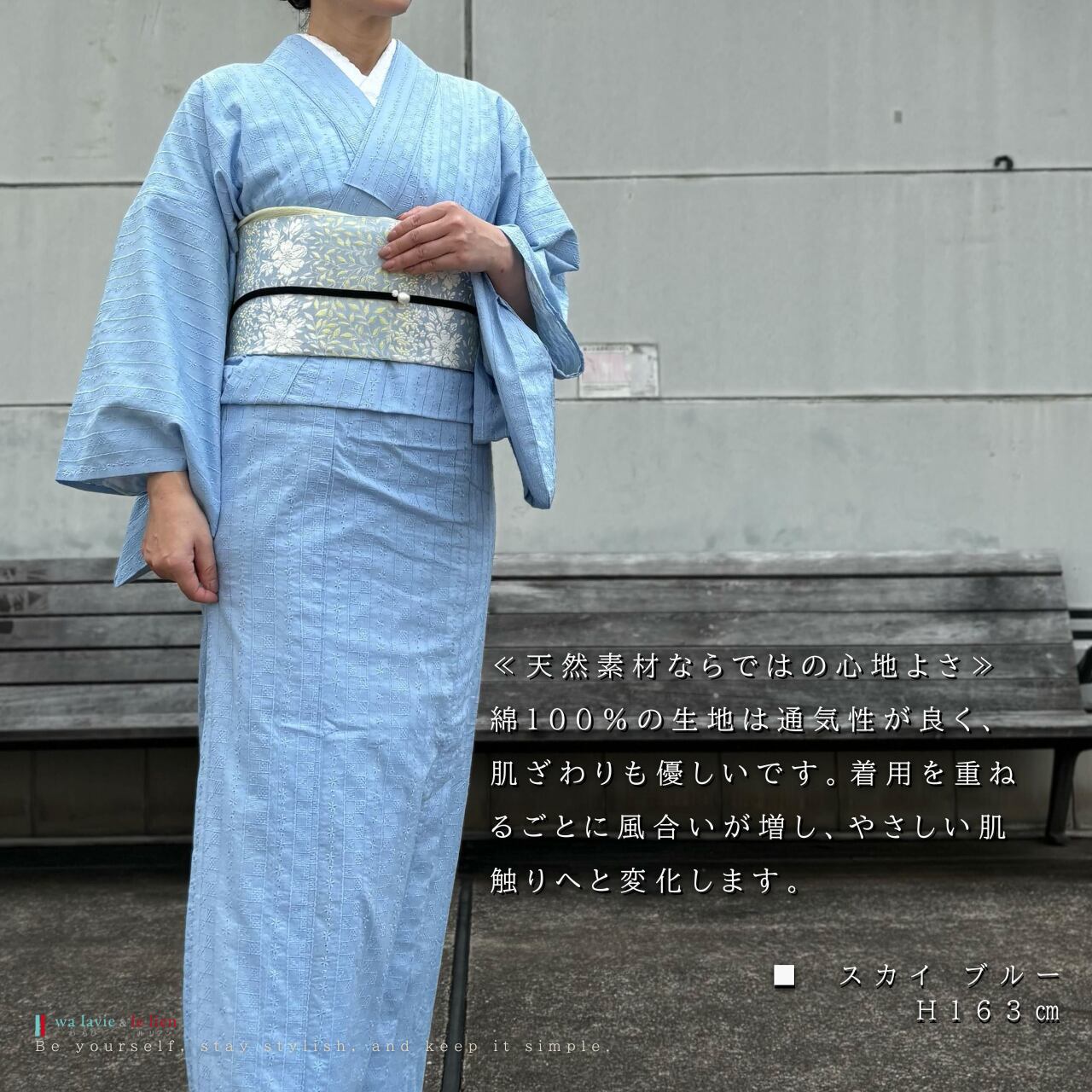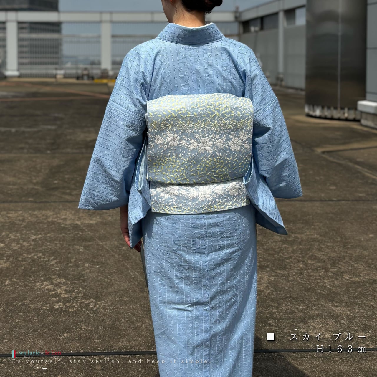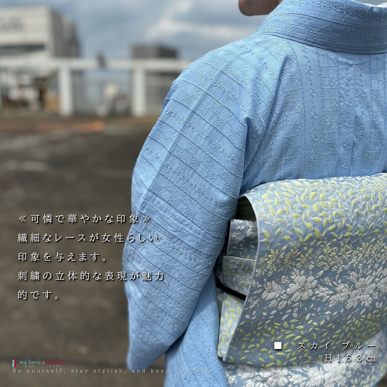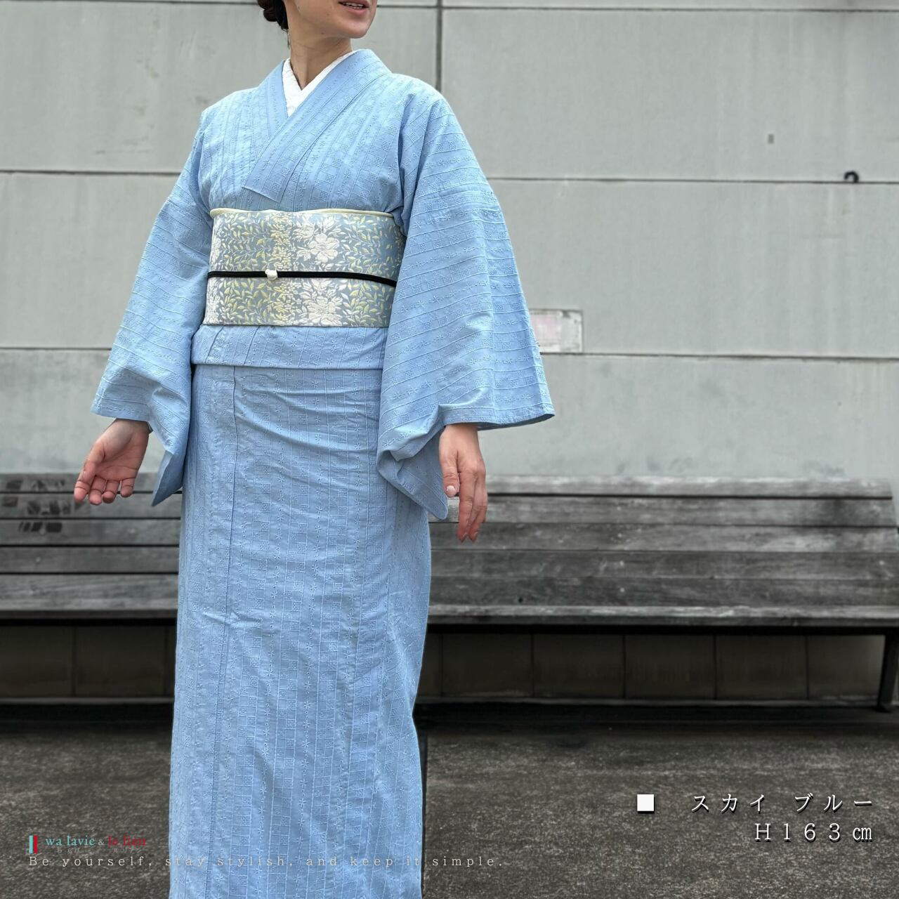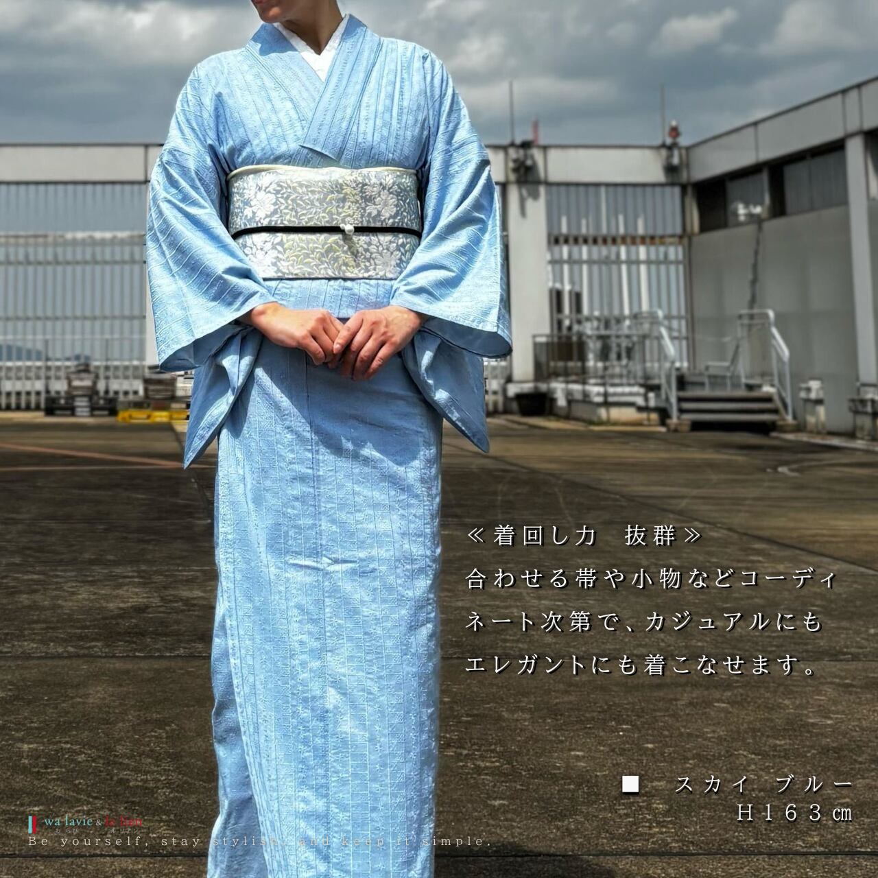合わせる帯や小物などコーディネート次第で、カジュアルにもエレガントにも着こなせます。