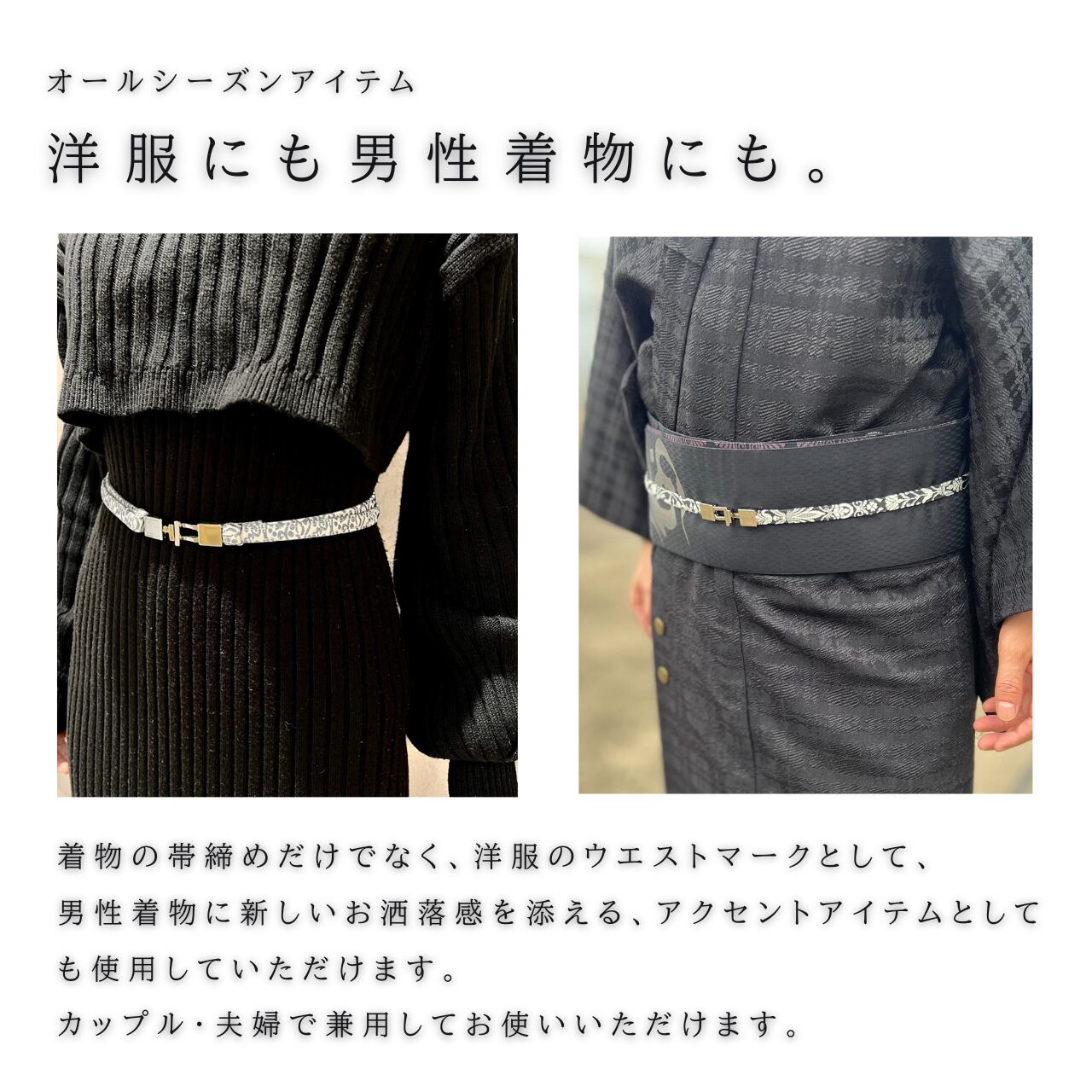 男性は角帯の上に、女性は三分紐の代わりに使用できるよう細めのベルトに仕上げました。