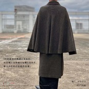 インバネスコートは19世紀末の英国で生まれ、シャーロック・ホームズが着用した外套として知られる伝統的なコートです。肩を覆うケープ構造は、当時の紳士たちの防寒着として機能性と格式を兼ね備え、知性と品格の象徴でもありました。
