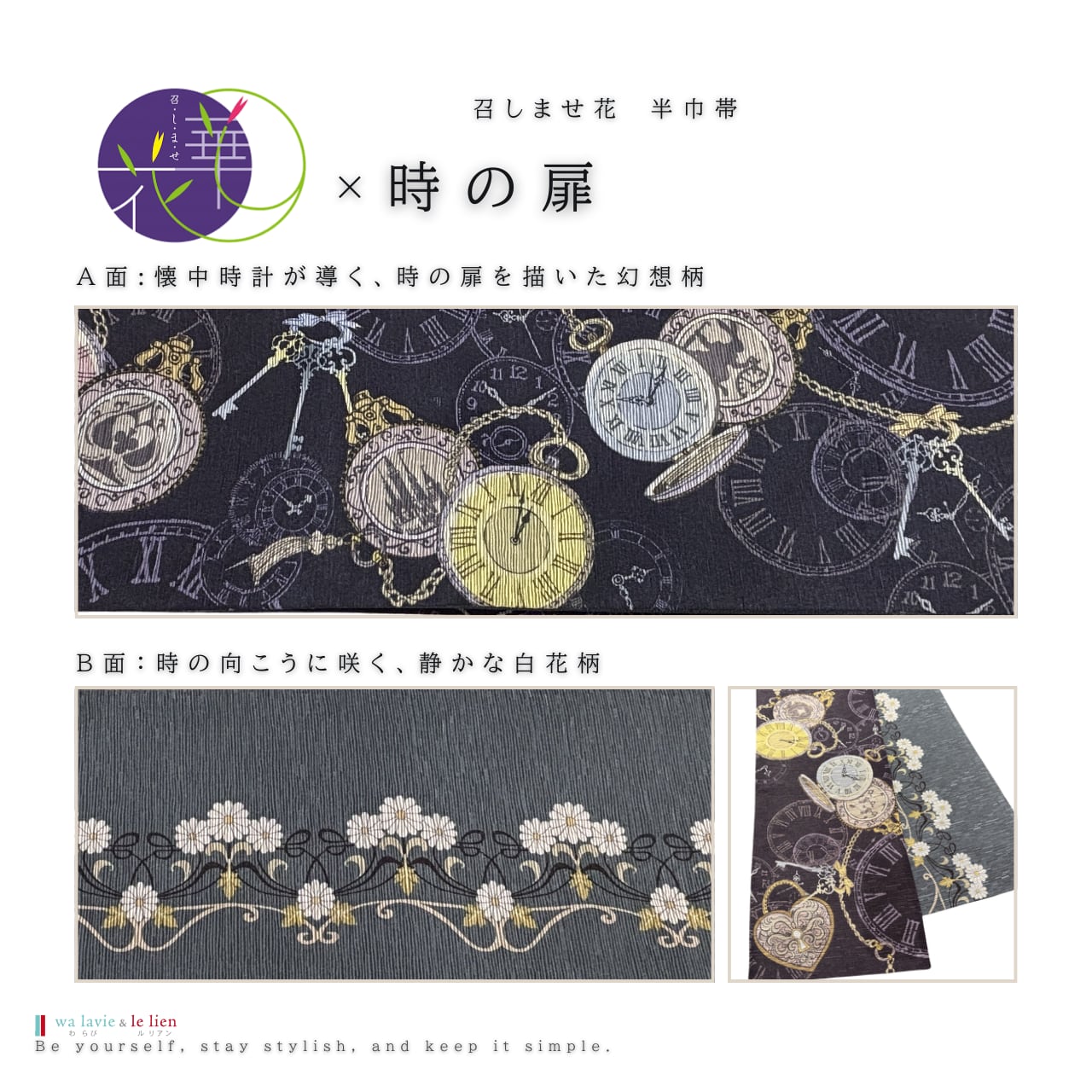召しませ花のコレクションの中から”わらびルリアン”が厳選した半巾帯をセレクト。