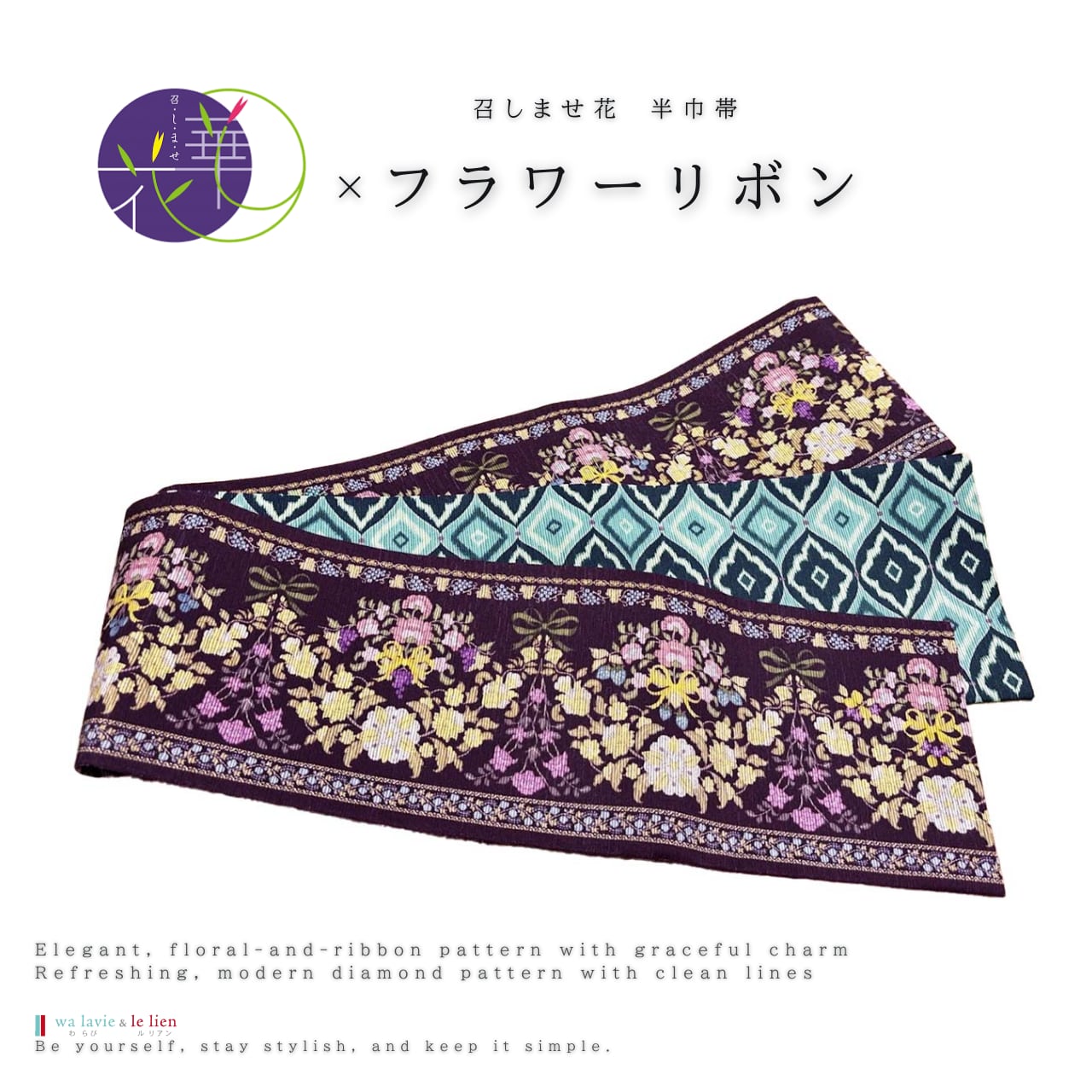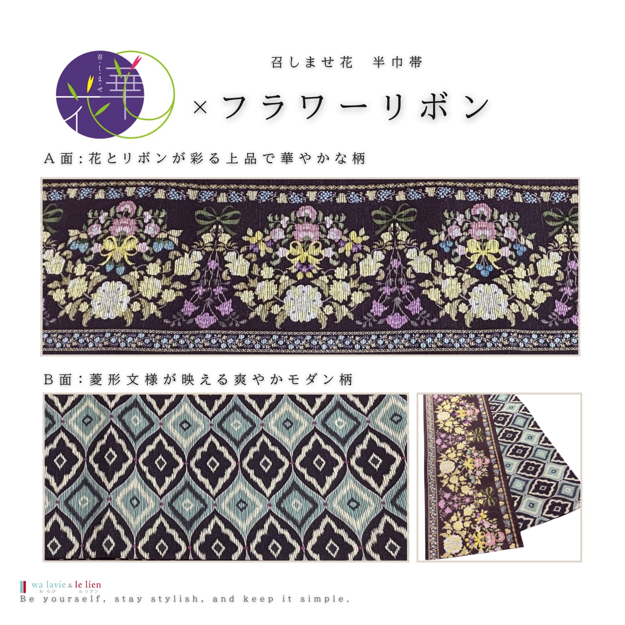 召しませ花のコレクションの中から”わらびルリアン”が厳選した半巾帯をセレクト。