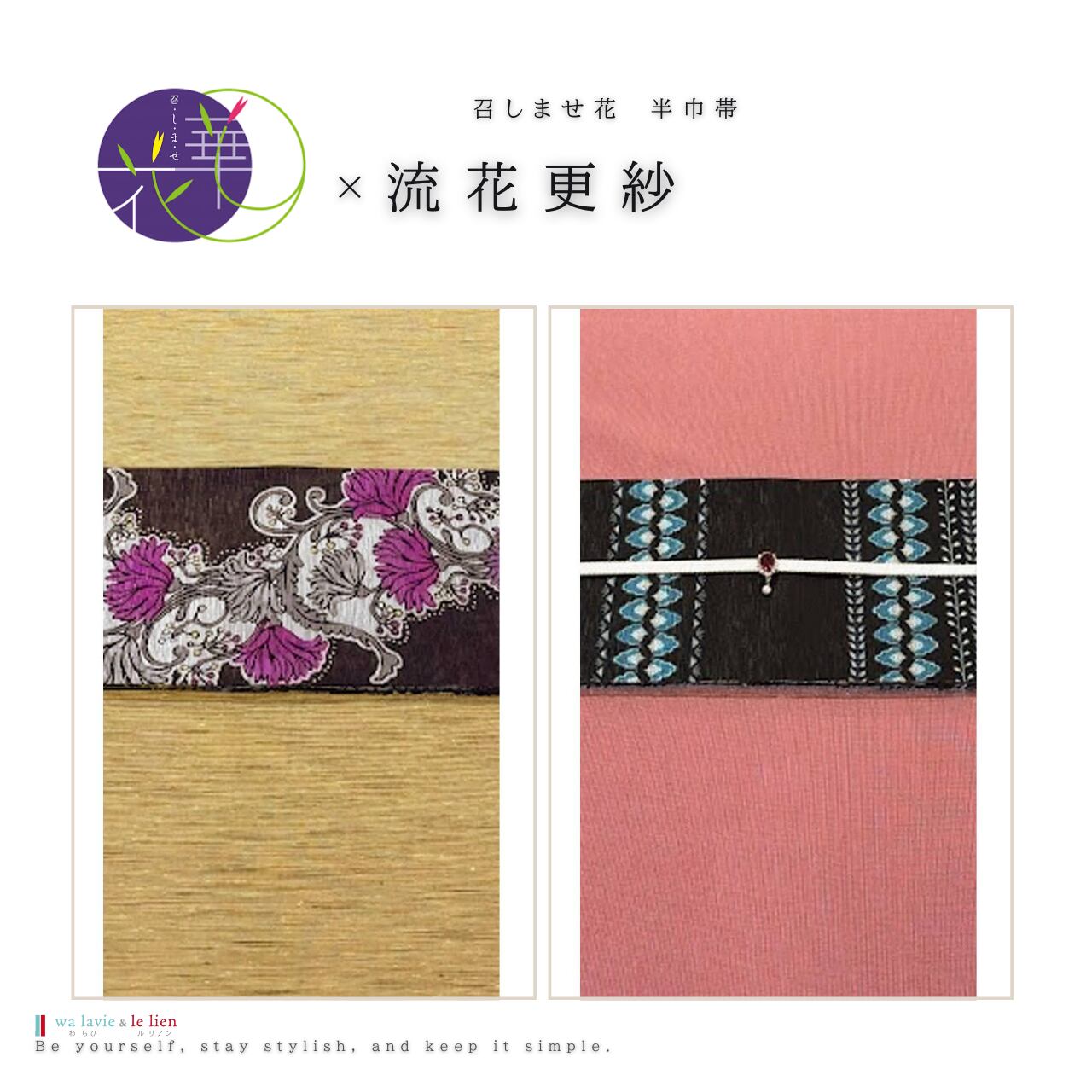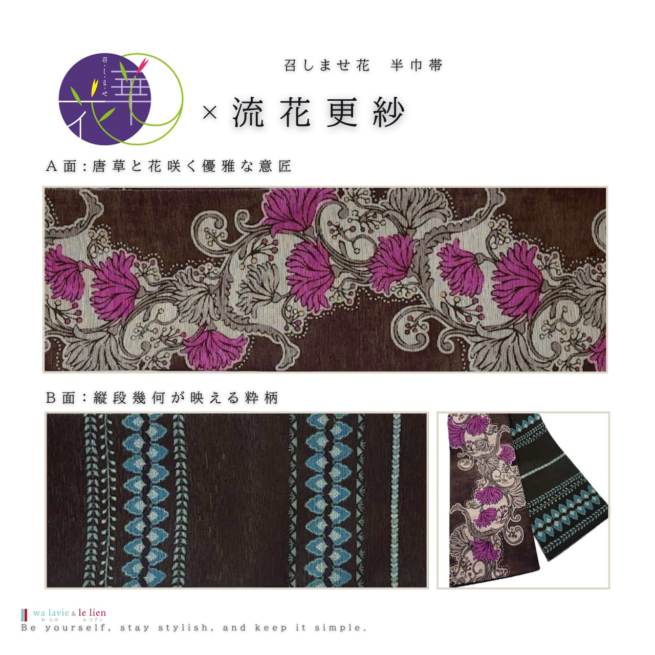 召しませ花のコレクションの中から”わらびルリアン”が厳選した半巾帯をセレクト。