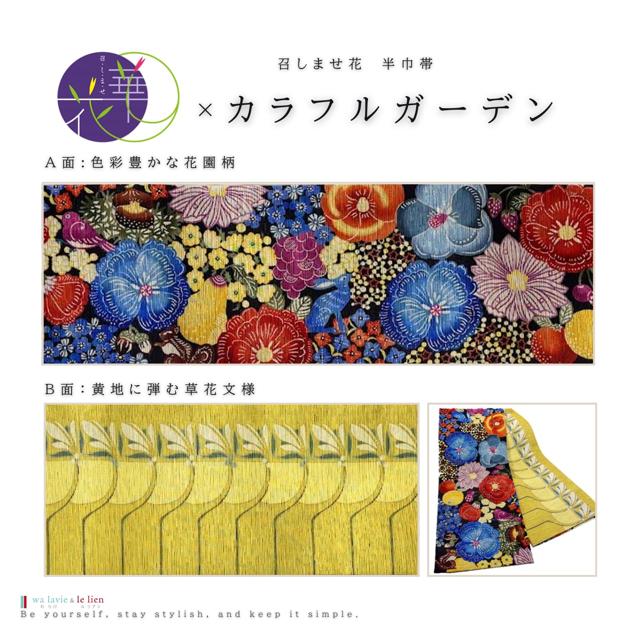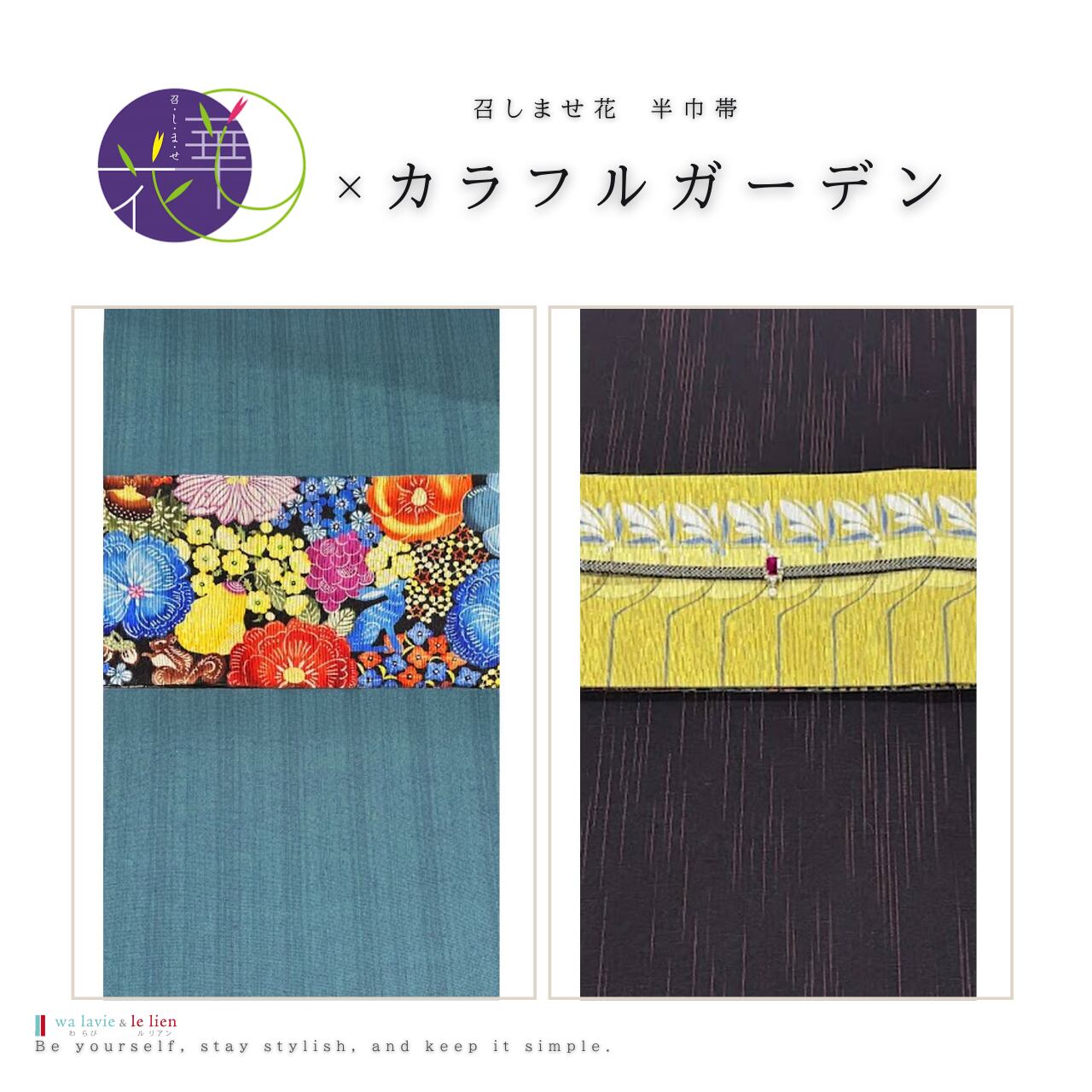 召しませ花のコレクションの中から”わらびルリアン”が厳選した半巾帯をセレクト。