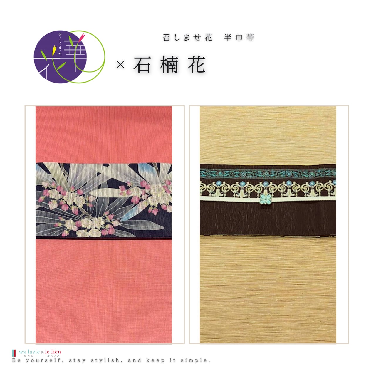 召しませ花のコレクションの中から”わらびルリアン”が厳選した半巾帯をセレクト。