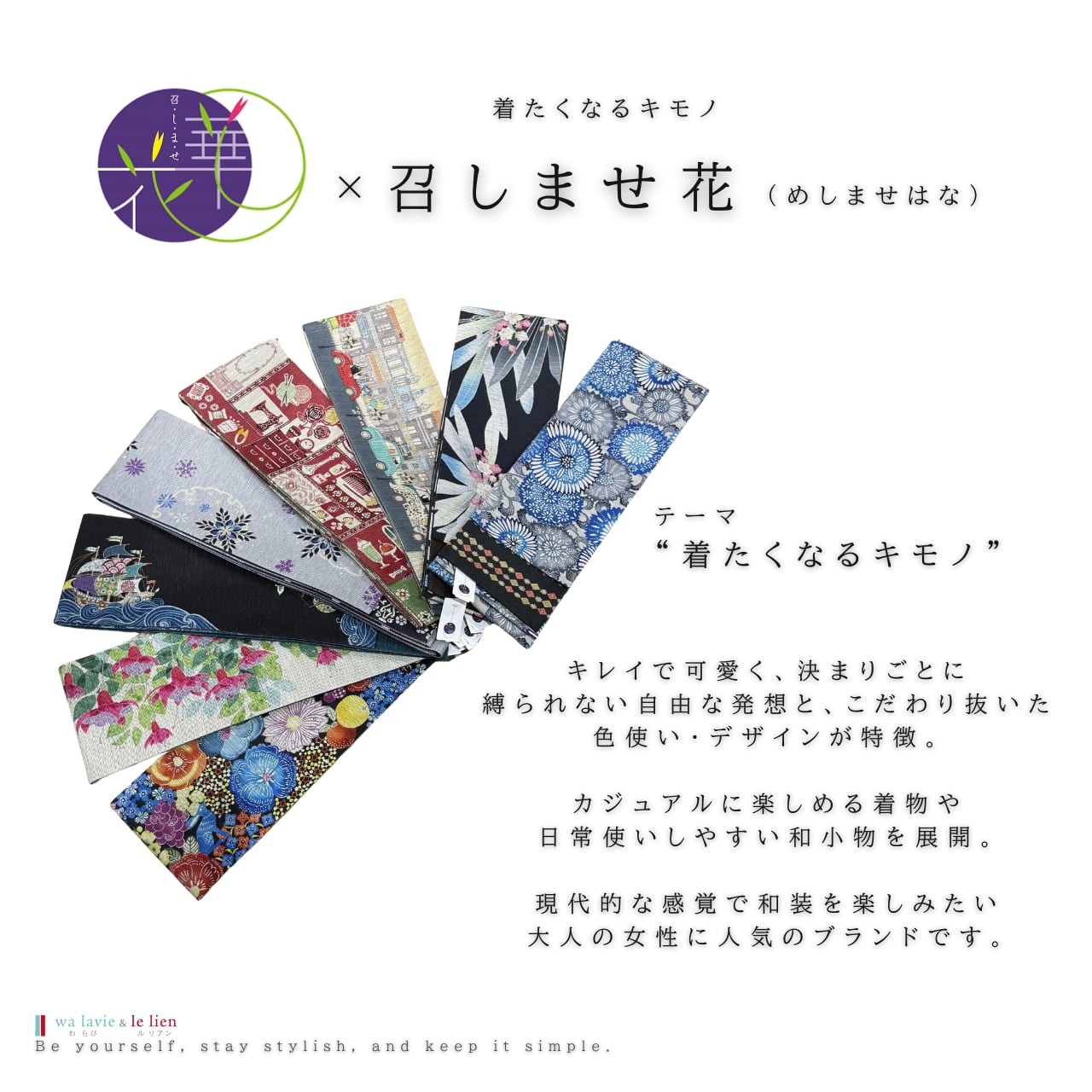 召しませ花(めしませはな)は、京都の老舗「京都小泉株式会社」が手がける現代きものブランドです。
