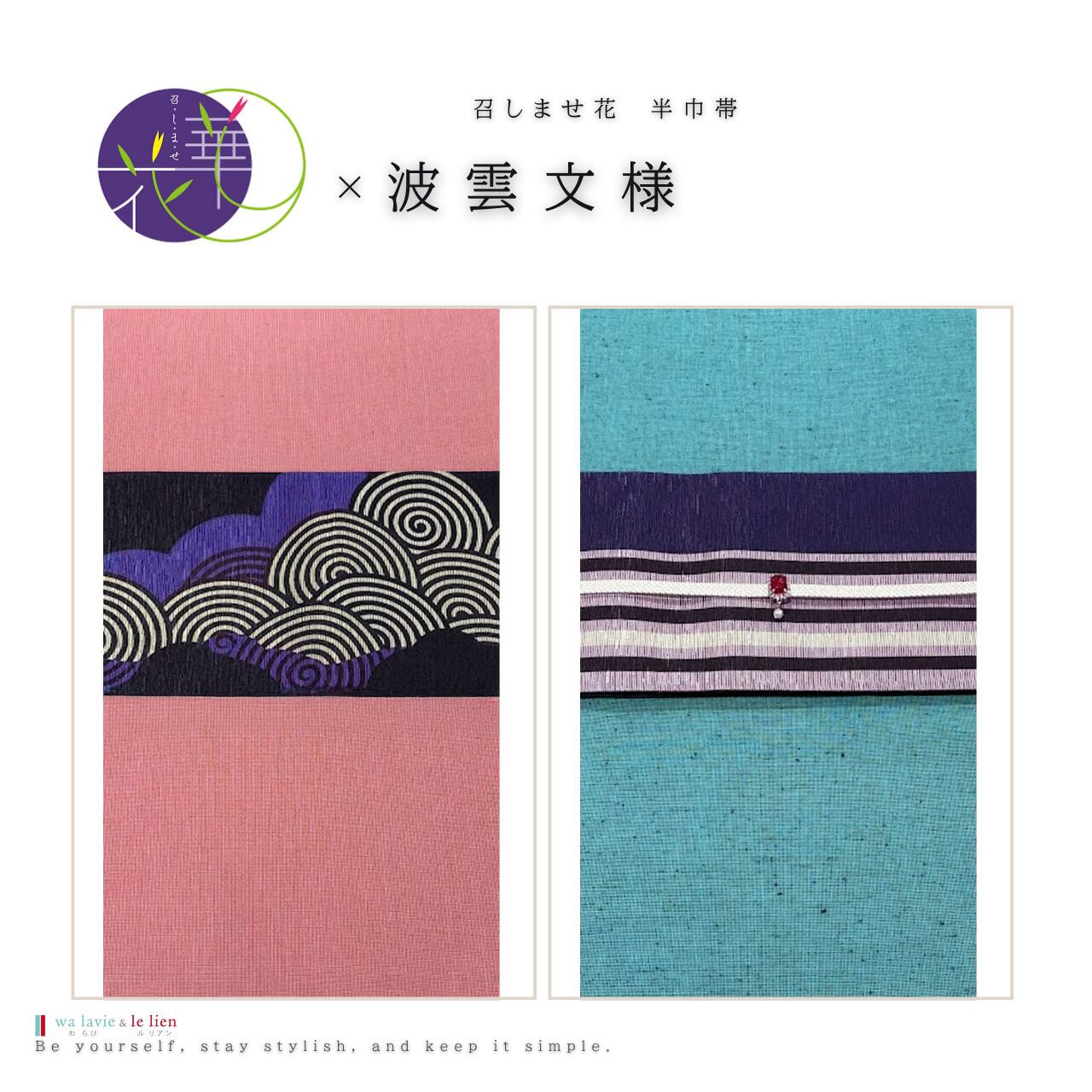 召しませ花のコレクションの中から”わらびルリアン”が厳選した半巾帯をセレクト。