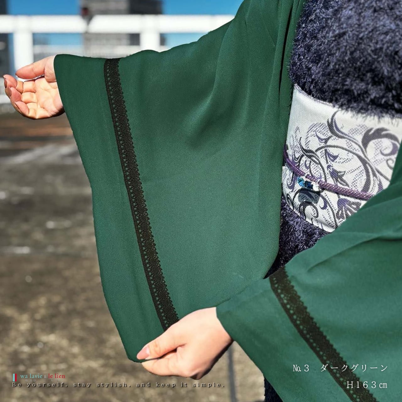 着物にはもちろん、ワンピースやパンツスタイルにも自然に馴染み、日常のお出かけから観劇や食事会まで幅広く活躍します。