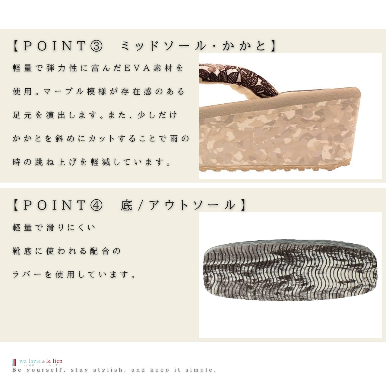 鼻緒は正絹にWAKKAの柄を染め上げ足元のオシャレをワンランクUPします。